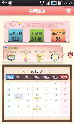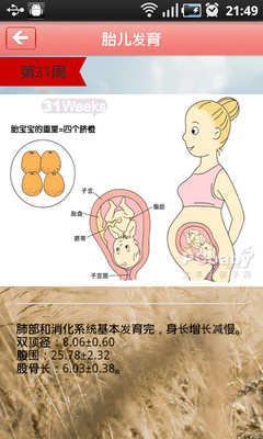 孕期宝典是一个怀孕妈妈方便易用的实用型APP,通过询问多位妈妈,采集他们的关注点,以最人性化的方式展现他们最关注的信息,孕期宝典包含孕妇40周的营养变化,饮食注意;孕妇妈妈40周的生理变化;胎儿40周的成长变化;每一周对应的胎教指南及胎教音乐推荐。