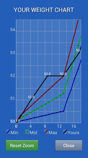 應用表明最小,最優和最大重量的每一天。它顯示是根據您的體重指數表。你可以輸入你的體重每天和優化比較。