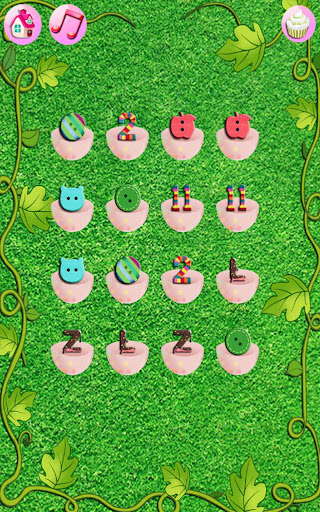 可愛巧克力字母和數字、糖果都躲在蛋糕和雞蛋裡,如果你能夠找到二個一樣的字母,或者數字,把它們配對成功,你就可以得到它們。