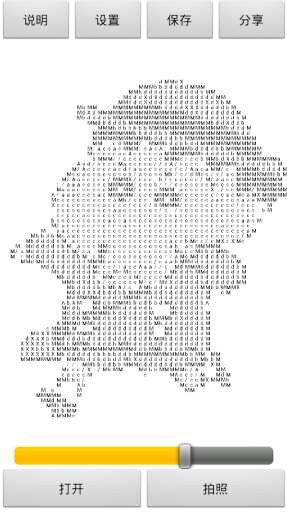 羡慕网络上流行的字符画吧,传说中的字符画神器出炉了,使用字符画照相机,轻松一拍,立即生成字符画,你也来试试吧
