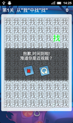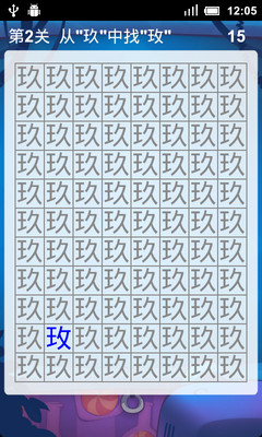 找出字海里不一样的字。共175个关卡。可以根据能力调整不同的级别。
