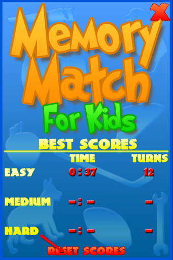 記憶庫匹配4個孩子,把你經典的記憶遊戲,並增加了令人愉快的聲音和豐富多彩的圖形。你的家人可以爭取在最短的3個難度級別,每圈最快時間為高的分數。您可以在任何時間,以保持競爭新鮮的分數重置。