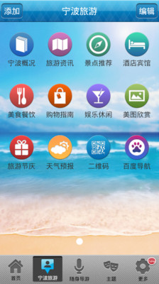 本软件是宁波市旅游局为游客提供的一项免费宁波旅游APP应用服务,通过手机APP应用为游客免费提供宁波吃、住、行、游、购、娱等旅游信息,提供各类旅游信息查询、展示服务和互动服务,提供宁波旅游快讯、节庆活动、旅游惠民等信息查询展示,提供宁波市介绍、旅游特色、专题旅游介绍、旅游攻略、推荐旅游线路、景点等查询展示,提供旅游信息实用信息服务(常用电话、天气预报、咨询点、银行等),提供直接拨打电话咨询投诉、地图位置查看、导航等服务。