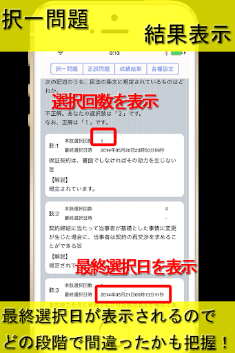 ⇒「宅建漬」は現在の知識の定着度を確認するため、選択日も記録します。