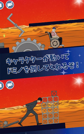 ▼宇宙兄弟のキャラクターが動いてドミノを倒すステージもあるよ!