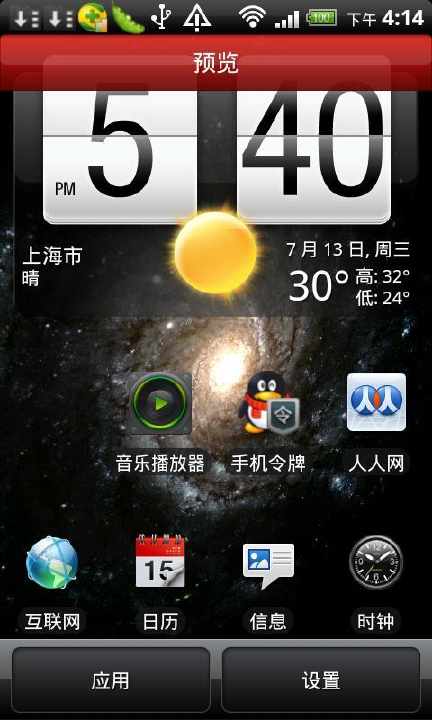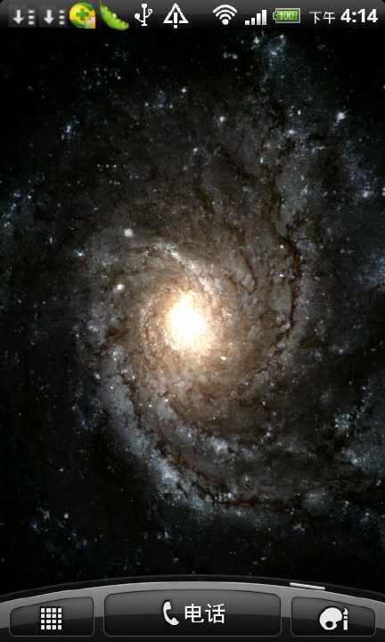 注:可设置星系的半径和旋转速度。首次打开动态壁纸方式:menu键(或长按屏幕)-壁纸-动态壁纸-选择相应壁纸-设置壁纸。