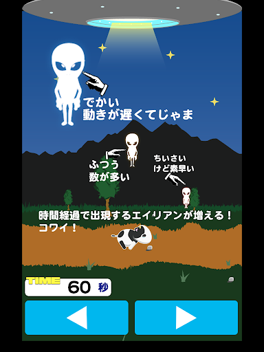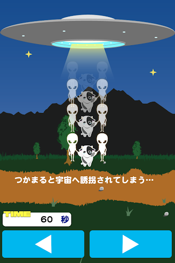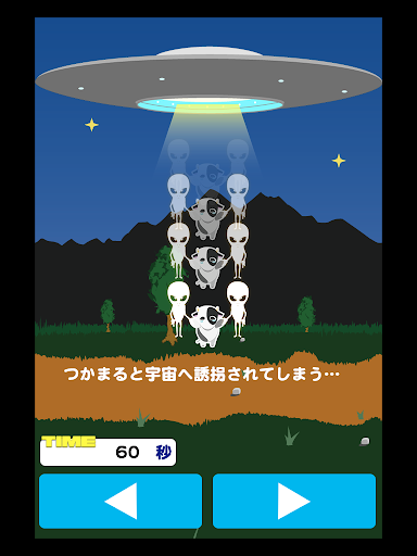 研究のためにうしをアブダクションしようとする宇宙人を、ボタン操作でよけつづけよう。