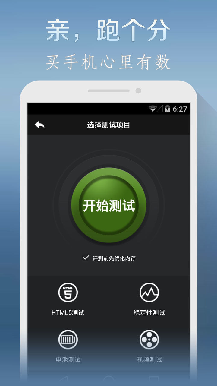 1、最完备的安卓设备评测工具:集硬件性能评测、HTML5测试、电池测试、视频测试、稳定性测试等五个测试项于一体全面测试设备的硬件、系统及电池等各项性能。