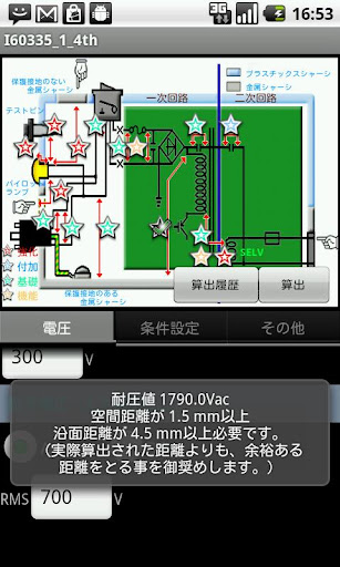 ボタンをタップするだけで絶縁距離の算出が行えます。