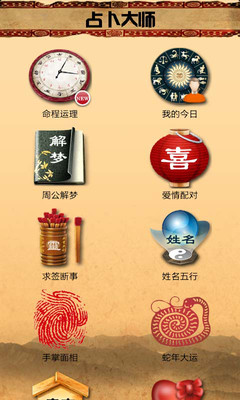 1.八字算命:该功能将详细揭晓您一生的秘密,从家庭婚姻,到学业事业,八字算命都可以详尽为您解答。