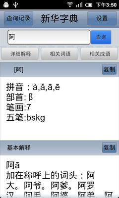 收录超过2万汉字,提供多种查询方式,包括部首、拼音、笔画、五笔、汉字的解释\查询,支持简体、繁体显示。