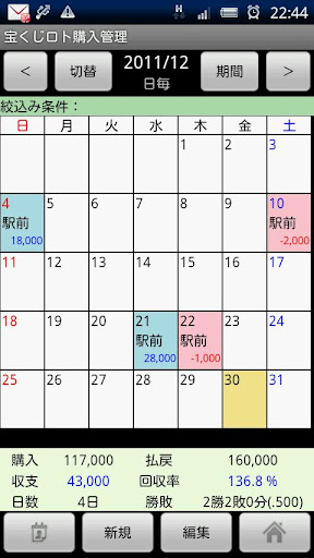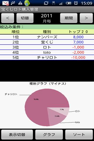 宝くじ、ロト、ナンバーズ、toto、チャリロトの購入管理をすることが出来ます。