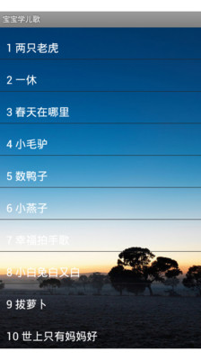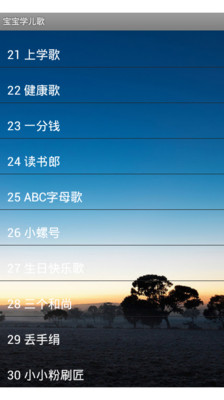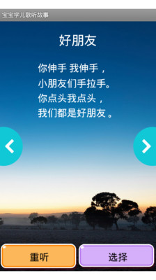 《宝宝学儿歌听故事》包含儿歌,儿童睡前故事,儿童歌曲大全.胎教音乐,寓言故事,民间故事,唐诗,成语故事,童谣,通话。