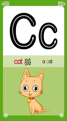 宝宝学英文以认识字母为主, 同时附加了日期和季节的英文单词, 还有简单的英文对话, 通过点击发音和相应的卡通插图, 让宝宝可以对英文有一个初步认知, 也给将来学习英语奠定了一定的基础。