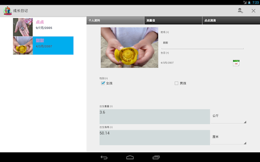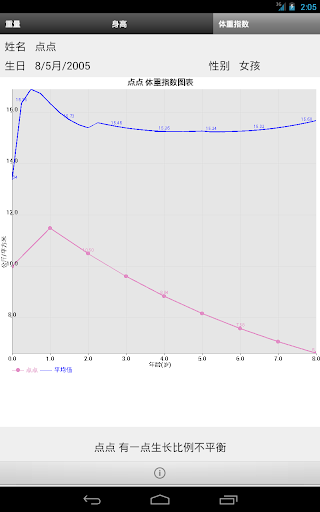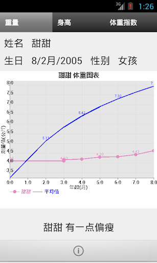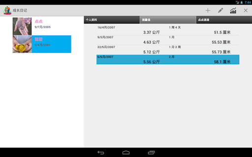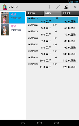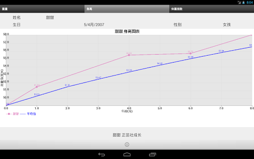 这是一款记录宝宝成长过程的应用。爸爸妈妈可以随时记录宝宝的身高和体重,并和世界平均生长标准比较。