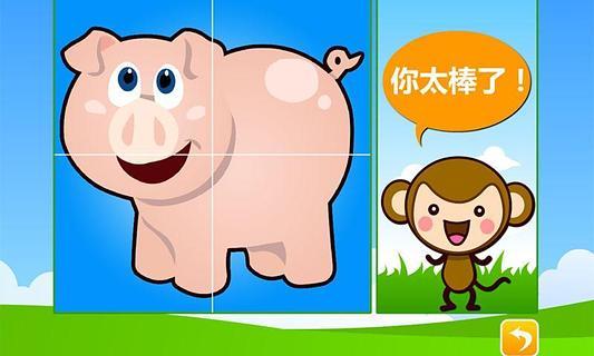 皮皮猴宝宝拼图让宝宝开发右脑,在拼图的时候认识动物,提高宝宝右脑智力开发,让宝宝在游戏中熟悉动物.点击动物拼图,拖动到左侧拼成动物图案.