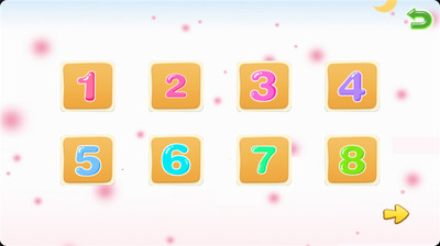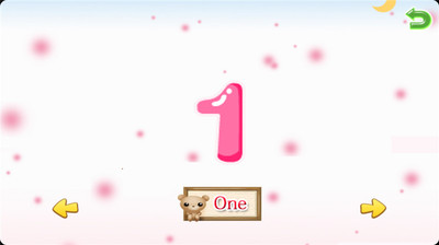 数字篇通过让宝宝触摸数字,对数字有初步认识,最终让宝宝掌握阿拉伯数字的发音;通过宝宝对蔬果个数的数数,达到让宝宝理解数字与数量的关系的目的。