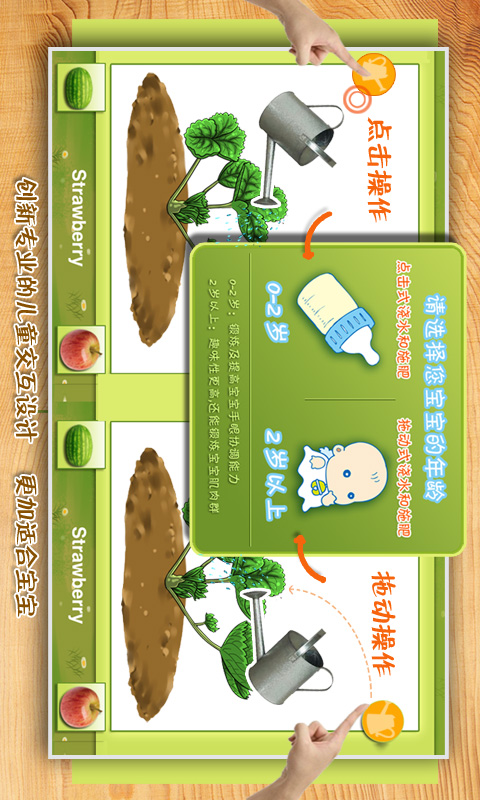 引入风靡全球的农场种植操作概念,并根据宝宝的不同年龄段的操作习惯,优化操作流程,