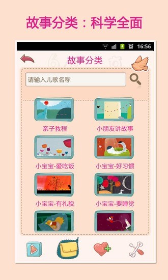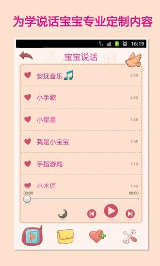 每个宝宝都是上天赐给父母的天使,自从有了她,我的生活发生了很大变化,更加忙碌也更加有责任感1到3岁宝宝是人生最宝贵的成长期与认知期,说话宝宝应用软件正是针对这一时期宝宝设计研发的一款系统聆听教材