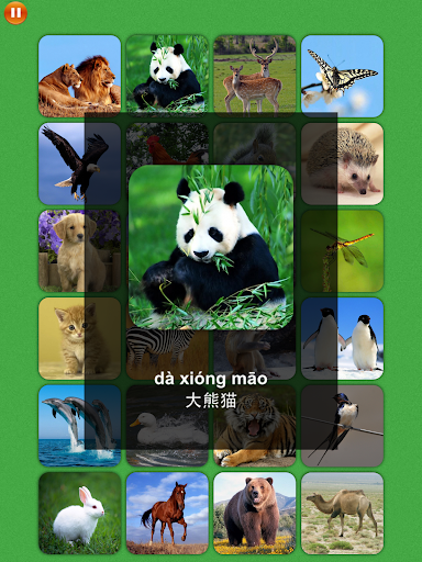 图片对对碰,适合稍大一点的宝宝, 匹配两个相同的图片,即可消除它们,消除所有的图片后胜利。针对不同年龄的宝宝,难度逐步增加。