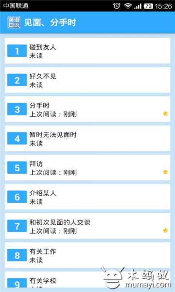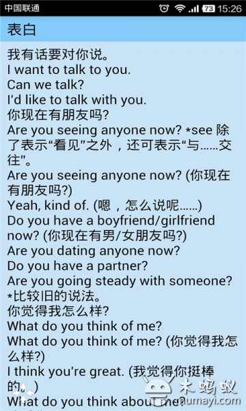 优化UI,极致清爽体验?android手机上最好用的实用英语口语,收录了接近10000条常用的口语,让您可以轻松应对与老外的对话。本软件将口语根据使用场景划分为20多个类别,每个大类别下又具体分为小类别,可以让您快速的找到您需要的口语实例。本软件会记录您的阅读情况,允许您收藏喜欢的口语等等...更多功能等你来挖掘??
