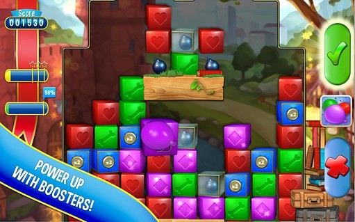 这个超好玩的游戏中有数百个关卡,每一关都各具超棒功能—呼啸火箭、彩色漆罐和爆裂炸弹等众多道具能帮助您通关并获取高分。移动步数有限,因此请仔细计划。