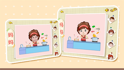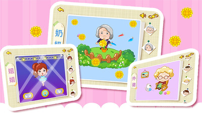 可爱的画面,丰富的互动元素在增添趣味性同时又给孩子们更加直观的概念,通过引入幼教领域惯用的“家庭树”的概念,让孩子们在简单又不失趣味的互动操作中逐渐树立我与家庭成员之前的关系意识。