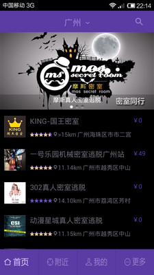 搜索最好玩的密室、查看附近最方便的密室。