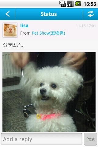 宠物秀为喜欢宠物的朋友们提供了一个互相交流的平台。在这里,您可以通过手机直接秀出自己宠物的照片,可以交流养宠物的经验,可以分享宠物生活的点点滴滴,还可以有缘收养自己喜欢的宠物宝贝。