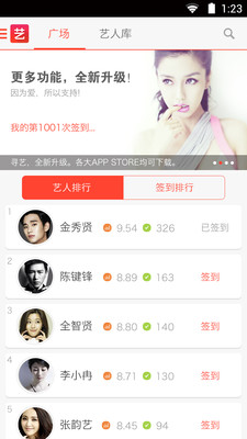 寻艺是一款制作精美的艺人签到app,这里可以通过为艺人签到,提高艺人在整个网络权重的影响力,让她/他了解你的爱。