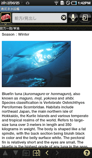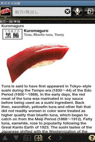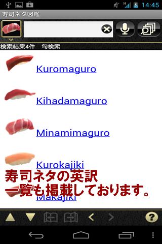 お寿司屋さんに出かける際には「寿司ネタ図鑑」をAndroid端末に入れてお持ちください話題作りにも最適です。
