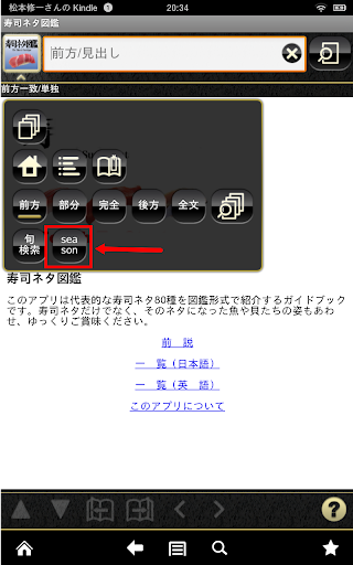 画面右上から単語、文字を入力し「前方一致」