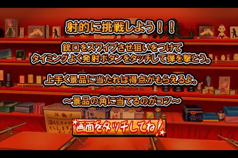 「射的の達人」は昔懐かしい夜店で狙いをすませて景品を落とす無料シューティングゲームです♪