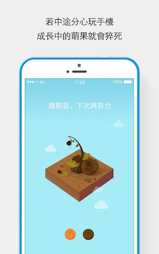 如果妳想要壹段時間不玩手機,去集中註意力工作,就可以在專心app裏種下壹顆萌果種子。在接下來的25分鐘內,萌果將會慢慢長大,越長越美。如果在此過程中妳禁受不住手機的誘惑,離開專心app去玩遊戲、刷朋友圈,小萌果就會被妳殘忍殺害。