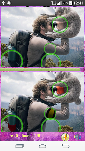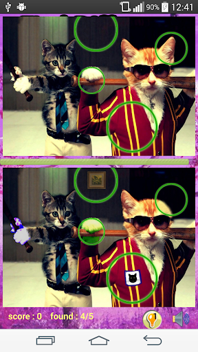 你必須找到這些圖像的五大差異和發現它們!超過20級。如果找不到任何的差異,你可以使用“提示”按鈕。玩得開心!