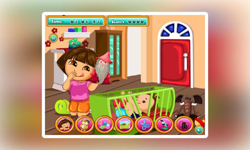 妈妈让小保姆拉拉照顾小弟弟,可是拉拉才不想做这种无聊的事情,她把婴儿房变成了自己的游乐场,睡懒觉,吃饼干,玩积木,刮刮乐,玩的不亦乐乎。但是要小心妈妈会时不时开门来监督,被看见可免不了一顿臭骂的!