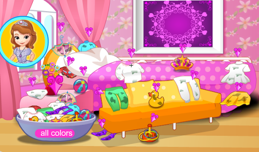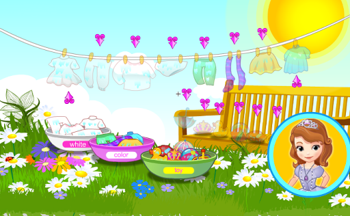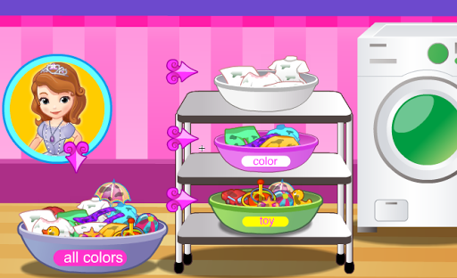 首先,清理卧室和带脏衣服和玩具洗手间。然后,衣服和玩具进行分类。不要忘了不同颜色的衣服需要不同的洗衣粉。洗完衣服后,竖起它们在阳光下。最后,把它们放好,有些衣服需要钢铁般的。你还可以帮助索菲亚打扮,她有很多新的春天的衣服和饰物。玩得开心!