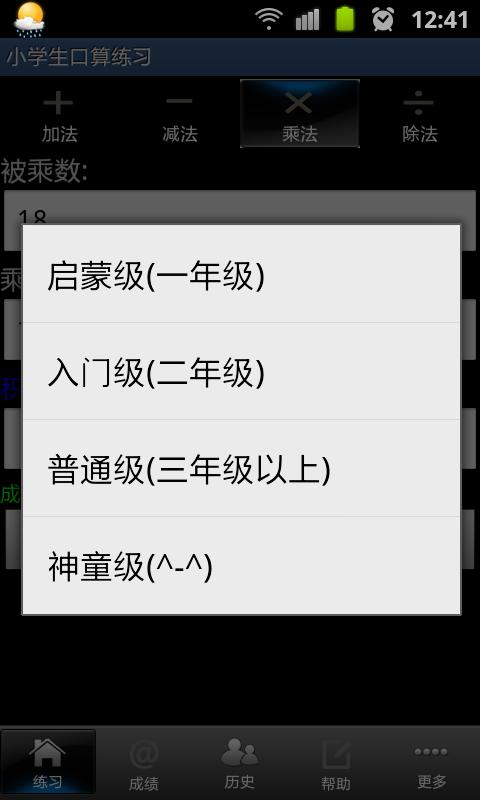 专门为小学生开发的口算、心算、乘法速算练习软件,按年级分为四等难度,加减乘除四则运算,有提示有评分有鼓掌有帮助,超级好用!儿子一用就入了迷,数学成绩有所提高