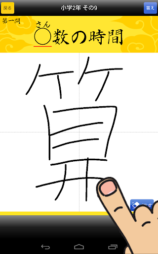 答えボタンを押した際には、漢字の書き順も表示。なぞり書きで漢字の書き取り練習ができます。