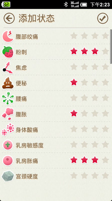 除了基本的经期跟踪功能与经期日历,女孩们可以记录自己的任何症状,情绪,性交,重量,温度,说明或药丸等等,实际上它可以设计成为您的个人日记和小秘书。