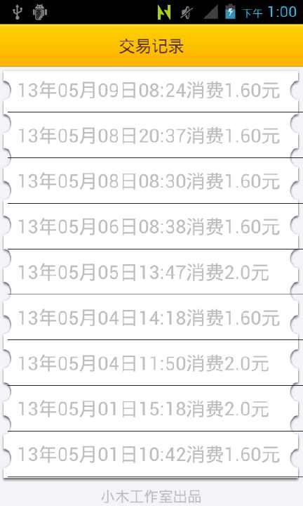 '小木公交'通过手机的NFC功能查询公交卡余额和公交卡交易记录,让你随时随地知道您公交卡的余额及交易明细。