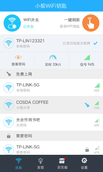 最智能的WiFi连接神器,内置数百万公共免费热点WiFi(数据不断更新中)。随时随地,智能自动连接。走到哪里都能享受免费快速的WiFi,帮您最大限度的节省流量,是您上网省钱的伴侣。
