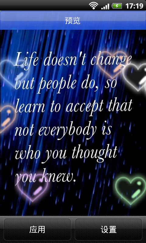 小温馨女生专用动态壁纸收集了数十张温馨、暖色动态壁纸,温柔的风格似乎更适合可爱小女生专用哦,小清新的风格也是男生不错的选择,点击免费下载,壁纸内可以设置各种效果