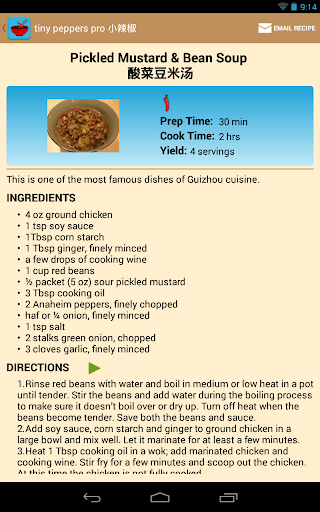 • 每个配方的红辣椒表示辣味,而绿叶表示它是素食。