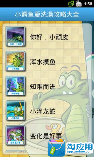 鳄鱼爱洗澡攻略大全[1.07] 鳄鱼爱洗澡 Where is My Water 是一款从 iOS 作业系统移植过来的的益智游戏,此攻略图文并茂,教你轻松过关,并且得到三只鸭子,帮助鳄鱼找回小鸭子,并且告诉你隐藏物品的位置,并打开隐藏关卡!