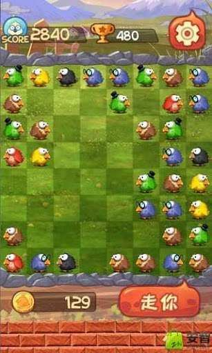 宁静祥和的庄园里,不知道哪里来了好多各式各样开的小鸟,它们会越来越多,会占满整个庄园,尝试让他们排排队,离开这里吧!让横向、纵向、斜向的至少4个小鸟练成一线,即可消除。看看你能得多少分吧?