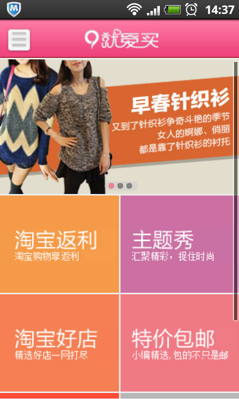 就爱买是一款百万网购达人们强烈推荐的“购物省钱”应用.全新的界面UI,丰富的功能汇集,最大限度的购物返利,第一时间传递时尚最IN主题,特价优惠信息一览无余…… [购物返利]几乎100%的商品均有返利,返利额度最高可达50%,提现申请达成后,24小时内迅速到账. [特价频道]每日早上10:00上新,海量商品精挑细选,全场“特价包邮”,畅享最低优惠折扣 [覆盖范围]数千家合作商户,涵盖淘宝网,京东商城,当当网等几乎所有知名电商平台,跳转“零”负担. [其他特色功能]云集“淘宝好店”“主题秀”“话费充值”等特色功能模块,充话费也能获返利;另外,手机端还可直接签到领M币值,提现等,省钱更便捷. .