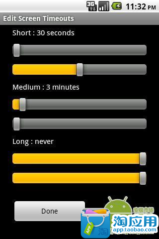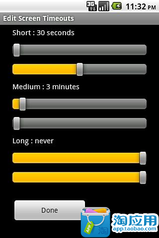 软件描述: 完成“按钮固定 一个简单的短/中/长的屏幕超时部件。 可在每个级别设置自定义超时(从1秒起任何时间)并可在他们之间迅速切换。 这个小工具也可以与我们的任何地方发射器和电源设置经理,NOTIFi,免费提供。