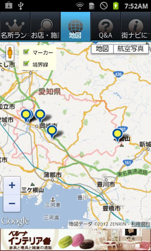 ・岡崎のお店や施設を探せ、地図上に場所を表示します。