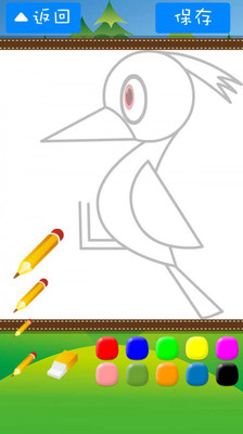 玩法:左边是笔触大中小,中间是橡皮擦,右边是十种颜色,右上角是保存到相册,左上角是返回选关界面。